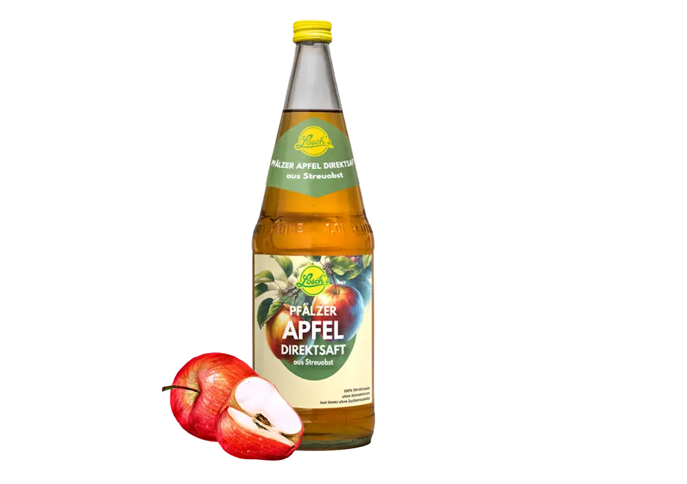 Aus Äpfeln pfälzischer Streuobstwiesen gekeltert, ohne chemische Pflanzenschutzmittel oder Kunstdünger behandelt.